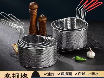 特厚304不銹鋼油炸籃微孔瀝水籃漏勺過濾網撈面網多功能漏勺 米篩