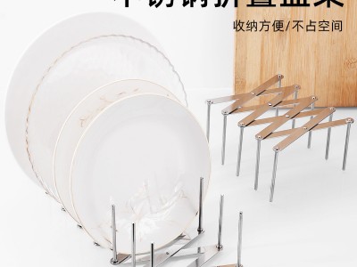 創意不銹鋼伸縮碗碟瀝水架 廚房用品多用途收納鍋蓋架子置物架