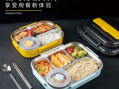 廠家直銷304不銹鋼飯盒 學(xué)生加厚分格餐盤便當(dāng)盒 帶湯碗保溫餐盒