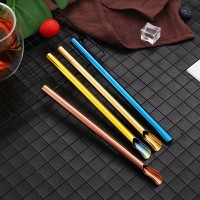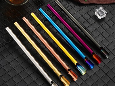 304不銹鋼吸管 創意奶茶冷飲咖啡攪拌沙冰吸管鍍色兩用吸管勺