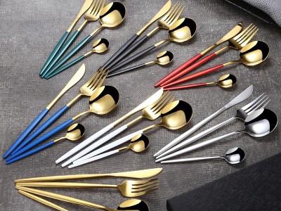 不銹鋼餐具牛排刀叉勺四主件禮品套裝鍍鈦亞馬遜葡萄牙西餐具套裝