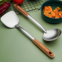 不銹鋼烹飪勺鏟 家用廚房用品木柄湯勺炒鏟套裝