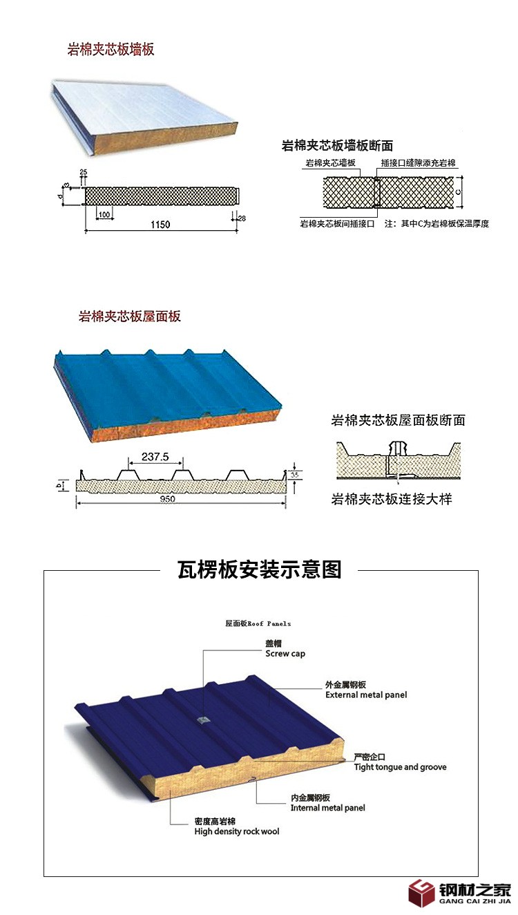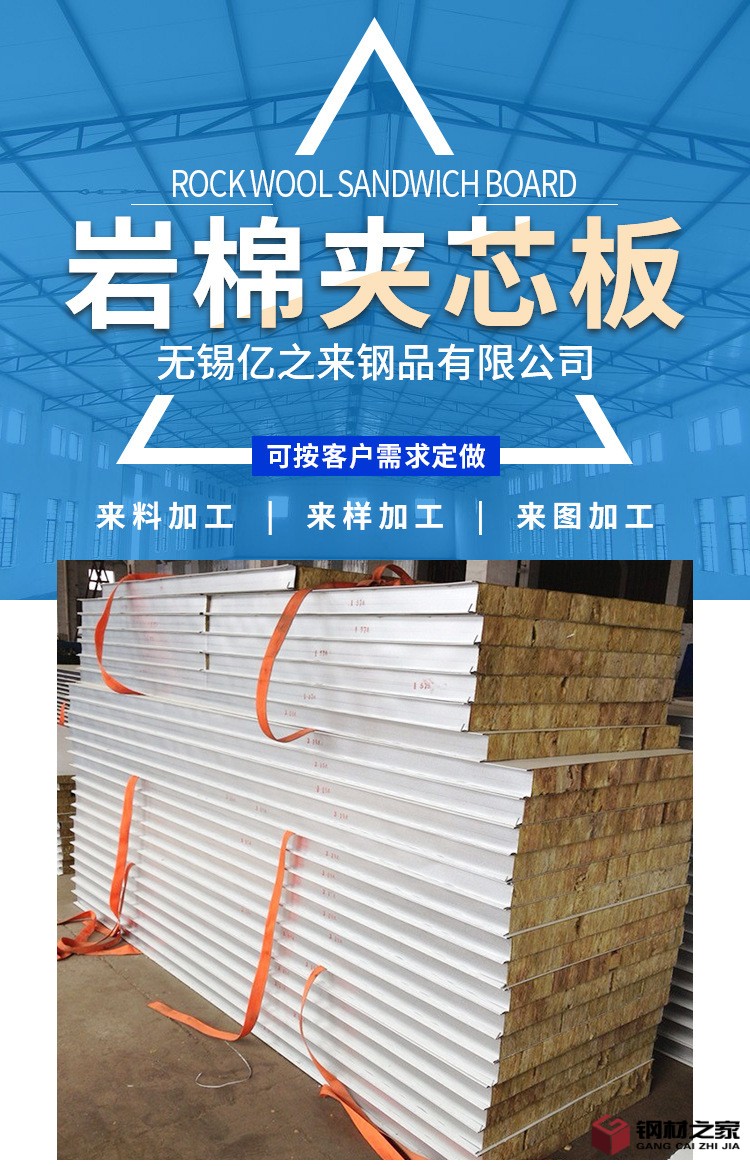 廠家供應巖棉夾芯板鋼結構 廠房隔音隔熱板 彩鋼巖棉夾心瓦夾心板