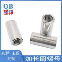 304不銹鋼圓螺母 柱形桿連接螺帽焊接加長套管標準件內絲接頭