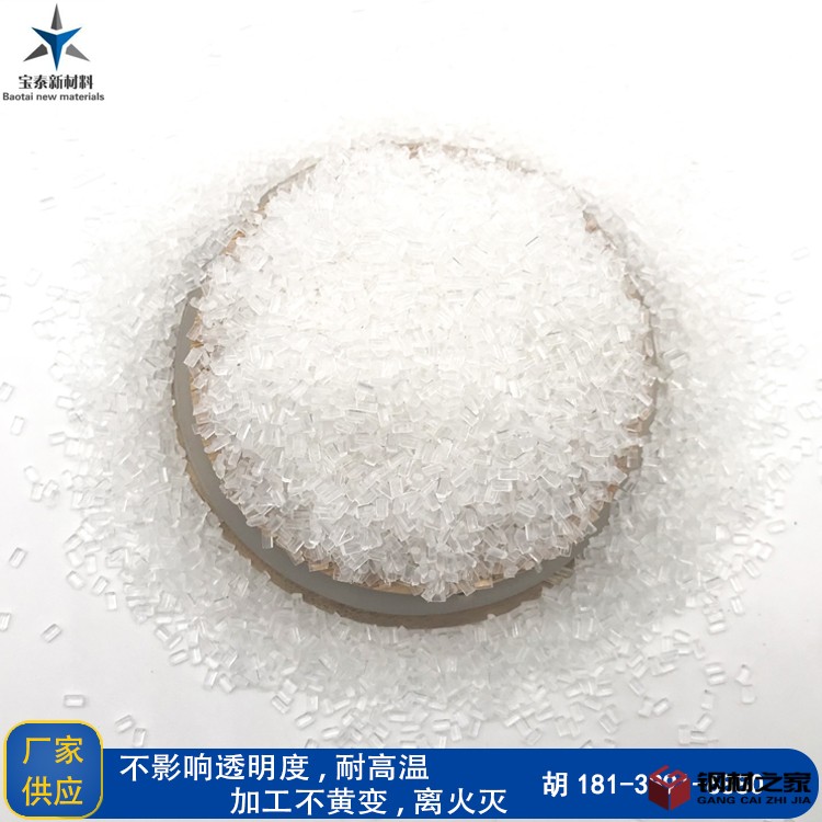 | 主要特性 | 1、不影響透明度、2、耐高溫,加工不黃變,3、離火滅 |