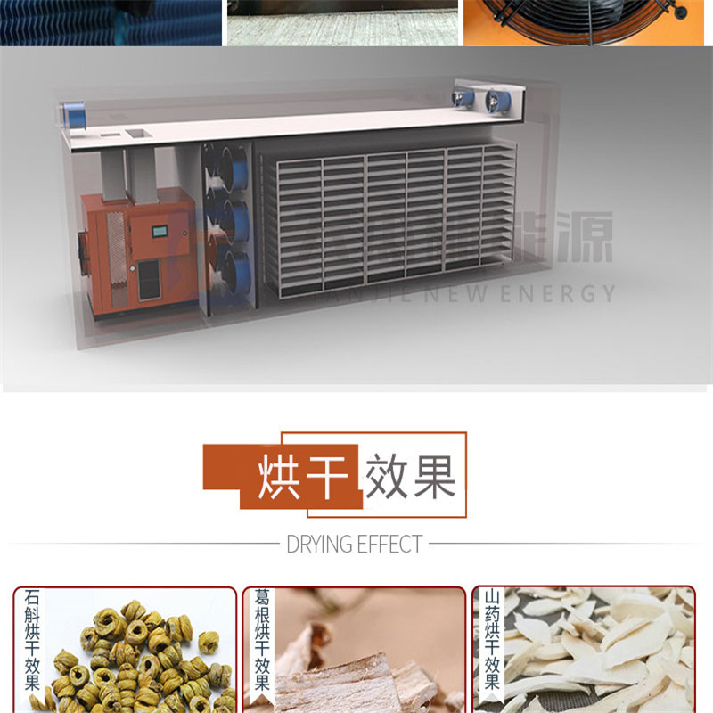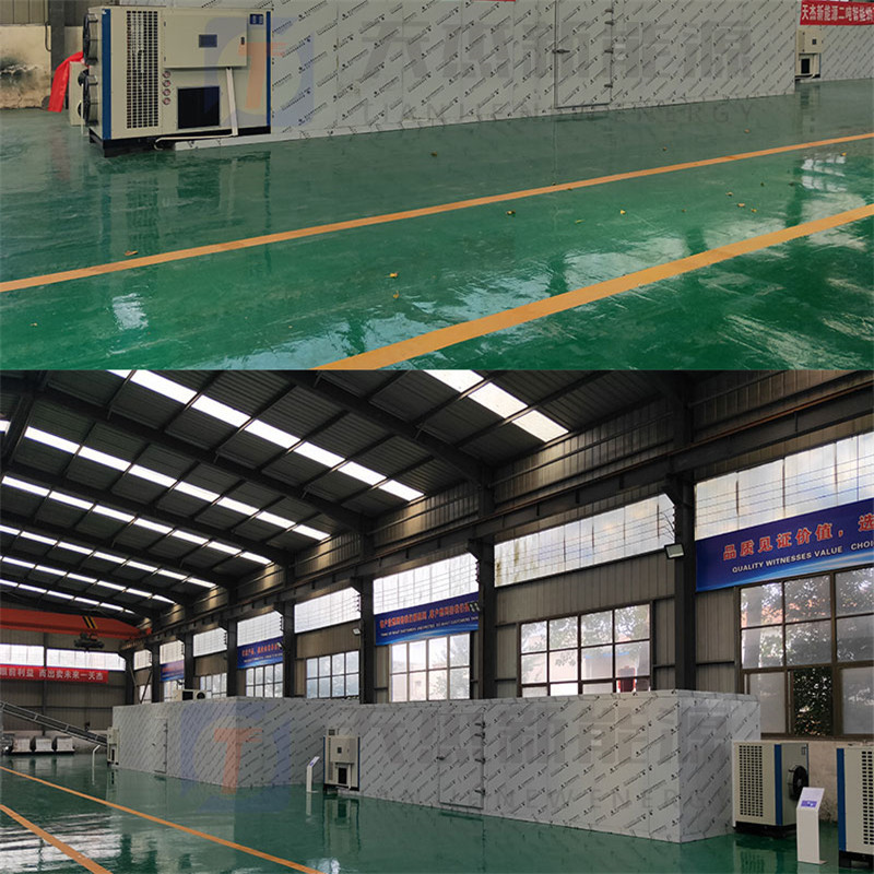 板材烘干機是利用逆卡諾原理,吸收空氣中的熱量并將其轉移到烘干庫房內,實現烘干房的溫度提高,配合相應的除濕排濕設備實現物料的干燥。熱泵干燥機由壓縮機——換熱器(內機)——節流器——吸熱器(外機)——壓縮機等裝置構成了一個制冷劑循環系統。冷媒在壓縮機的作用下在系統內循環流動,它在壓縮機內完成氣態的升壓升溫過程(溫度高達100℃),它進入內機釋放出高溫熱量加熱烘干房內空氣,同時自己被冷卻并轉化為流液態,當它運行到外機后,液態迅速蒸發吸熱再次轉化為氣態,同時溫度下降至零下20℃——30℃,這時吸熱器周邊的空氣**會源源不斷地將熱量傳遞給冷媒。冷媒不斷地循環**實現將空氣中的熱量搬運到烘干房內加熱房內空氣溫度達到干燥物料的目的。