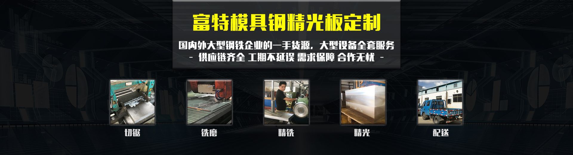 東莞市富特金屬制品有限公司位于廣東省東莞市長安鎮(zhèn)沙頭南區(qū)貓山北路96號(hào),是一家集鋼材貿(mào)易,加工配送于一體的綜合性企業(yè)。本公司為適應(yīng)市場的實(shí)際情況及客戶之殷切需求,經(jīng)營'冷作鋼','熱作鋼''塑膠鋼','粉末高速鋼:等,為用戶提供更多之選擇.公司設(shè)有大型加工設(shè)備提供精板光板加工,專業(yè)生產(chǎn)加工,擁有完整、科學(xué)的質(zhì)量管理體系。 經(jīng)銷批發(fā)的冷作模具鋼材、熱作模具鋼材、五金模具鋼材、塑膠模具鋼材、高速鋼暢銷消費(fèi)者市場,在消費(fèi)者當(dāng)中享有較高的地位,公司與多家零售商和代理商建立了長期穩(wěn)定的合作關(guān)系。本公司具有品種齊全,價(jià)格合理,質(zhì)量保證,送貨及時(shí)等特點(diǎn),始終追求“誠信經(jīng)營、服務(wù)至上、合作共贏”為經(jīng)營理念,致力服務(wù)于模具鋼行業(yè),向模具制造企業(yè)推薦和供應(yīng)優(yōu)質(zhì)的產(chǎn)品,誠信、實(shí)力和產(chǎn)品質(zhì)量獲得業(yè)界的認(rèn)可,歡迎各界朋友蒞臨參觀、指導(dǎo)和業(yè)務(wù)洽談。[詳細(xì)介紹] |