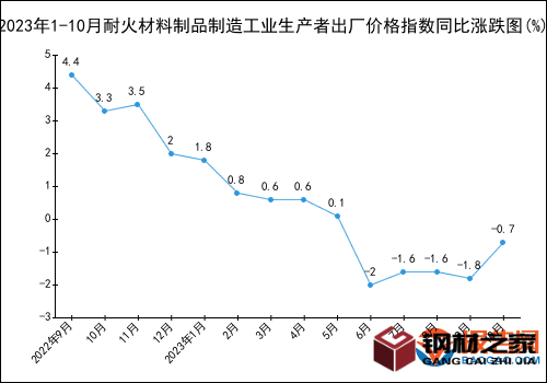 2023年1-10月耐火材料制品制造工業生產者出廠價格指數