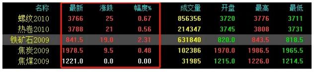 期貨日內(nèi)翻紅,期螺漲25收?qǐng)?bào)3766,期卷漲21收?qǐng)?bào)3788,鐵礦石漲19收?qǐng)?bào)841.5,焦炭漲9.5收?qǐng)?bào)1978.5,焦煤持平。