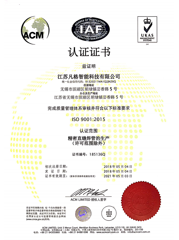 江蘇凡格智能科技有限公司成立于2017年8月10日,總經理從事焊管行業20余年,帶領一支卓越隊伍,新廠老廠合并,生產能量更強勁,品質更卓越。坐落于風景秀麗的太湖之濱,地理位置優越,東臨312國道