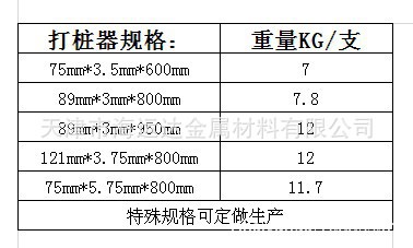 鋼樁的表面一斷為尖型,便于用打樁器打入地下。其中一個側翼上沖有一系列直徑為8毫米的孔,便于穿絲網。上端為平頂。并沖有"U"型孔。