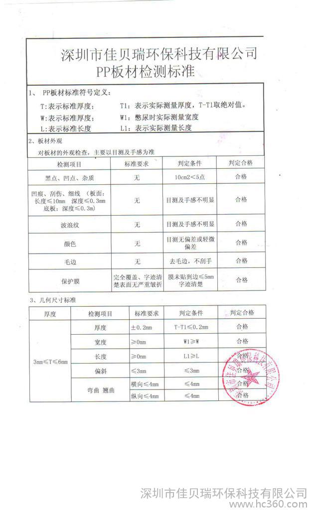 PP板的標準規格
